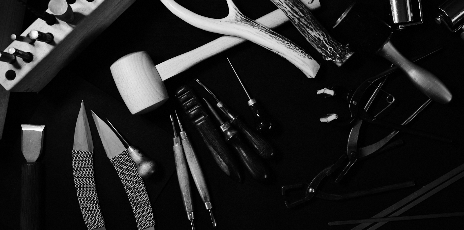 ⾰のもつ存在感を最⼤限に利⽤し、素材選びからデザイン‧縫製に⾄るすべての⼯程にこだわり続け、職⼈が⼀針⼀針精魂込めて縫い上げます。